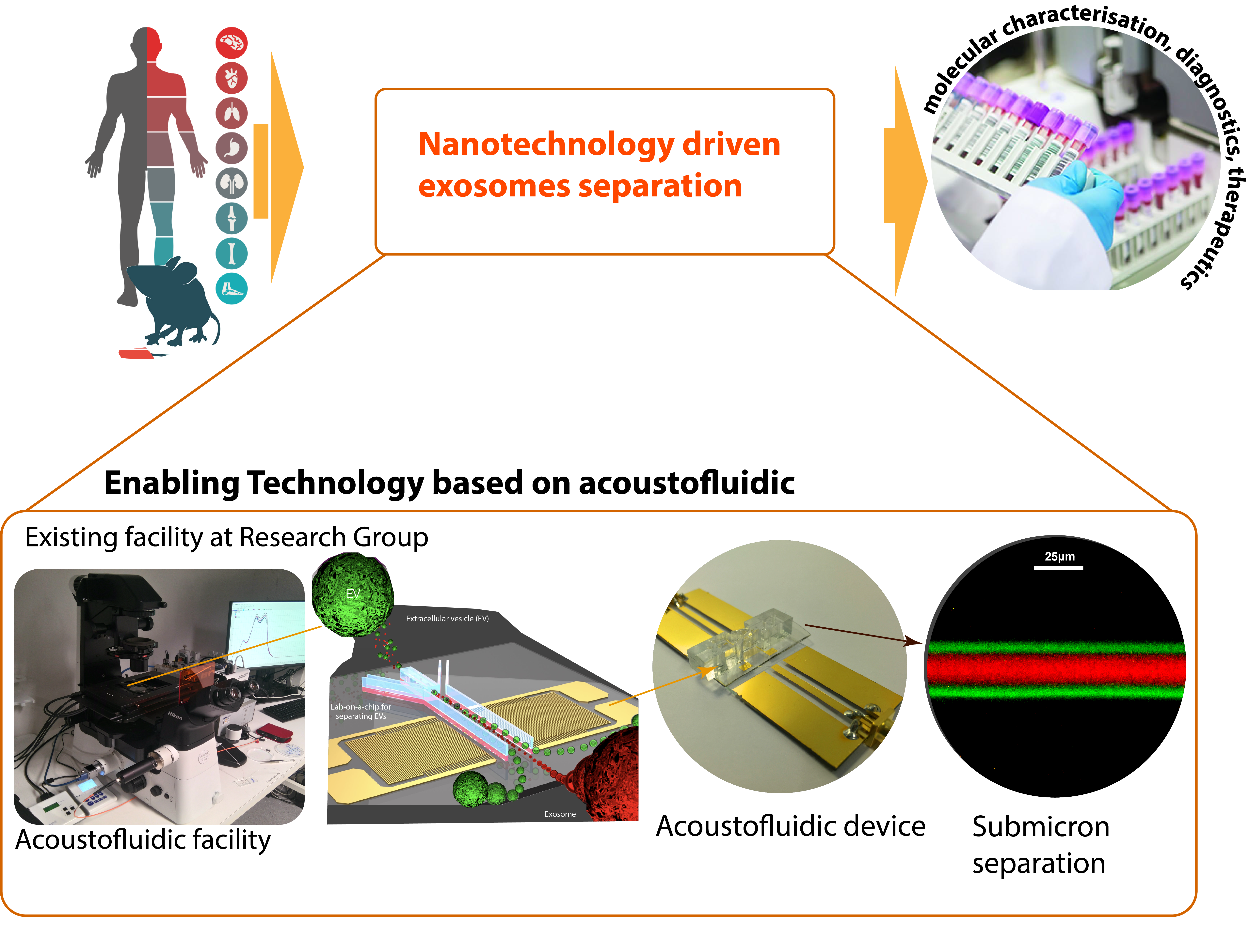 Description: Despite the extraordinary potential of the exosomes in protecting the heart, no optimal way to isolate and purify exosomes for characterization and especially for clinical utilization does exist. This project in biomedical engineering will revert this situation by combining nanotechnology, fluid mechanics, biotechnology, physics-based computational modeling and medicine for developing an exosome separation, purification, analysis and treatment platform. The platform will be evaluated by studying exosome purification in fluids from animal hearts and cell cultures, and by the use of the exosome-based material for treatment in of ischemic patients.